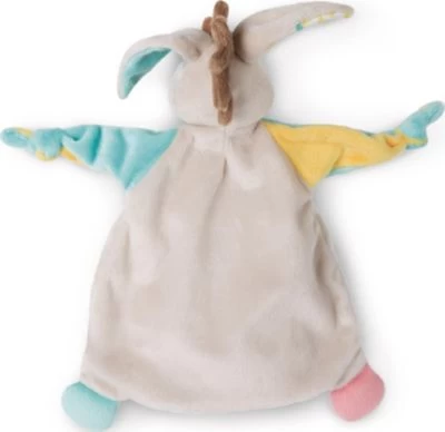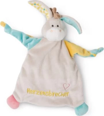 Dieses Schnuffeltuch von NICI ist sowohl im heimischen Bett als auch im Kinderwagen ein kuschliger Begleiter. Es regt das Baby zum Nuckeln, Fühlen und Greifen an.